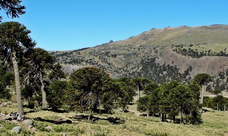 Ubicada a 340 km al norte de Neuquén capital, se puede apreciar la imponente silueta de la araucaria araucana (pehuén, en mapuche), que es el árbol milenario que sobresale en la región.