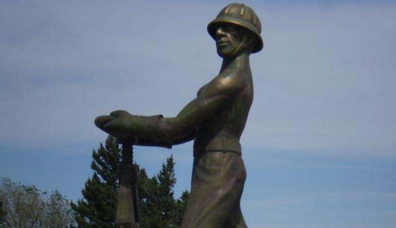 "Monumento al Obrero Petrolero": Gran obra de arte, que hace referencia a un obrero patagónico ejerciendo la dinámica energética de la apertura de una válvula.