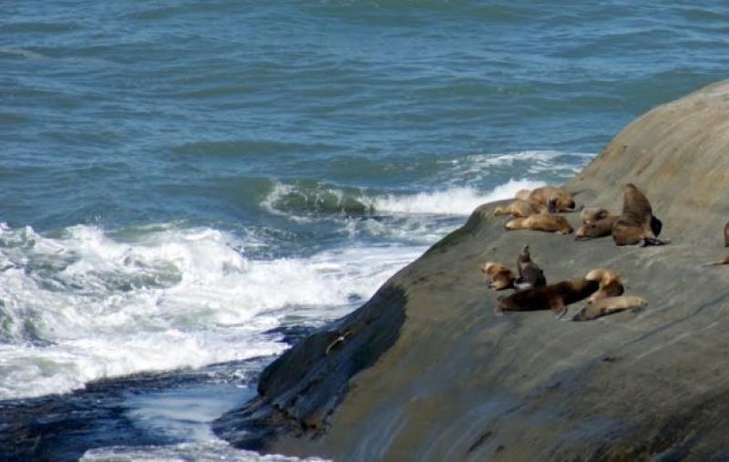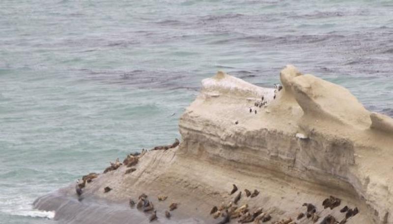 Lobos marinos de un pelo, se pueden observar en el apostadero al pie de la Cabeza del León forman una creciente comunidad de diversas edades visible desde el alto perfil del acantilado, aves volando por debajo del nivel del mirador y cetáceos, comúnmente toninas overas, que son pequeños delfines endémicos, ocasionalmente se ven delfines australes y ballena franca en tránsito.